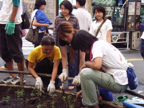 また、道行く人や待ち合わせをしている人にその場で「ぷらっと花植えしませんか?」と呼びかけて