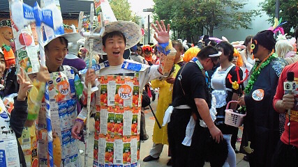 自分たちの仮装は牛乳パックで作ったエコ衣装です[:チョキ:]