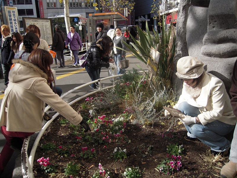 モヤイ像花壇は、ビオラ・シクラメンを主にした花壇になっています[:花:]